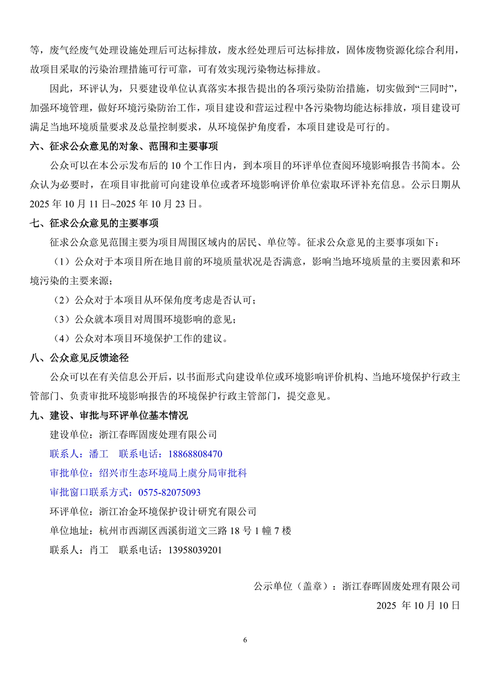浙江春晖固废处理有限公司危险废物转窑焚烧处理规模3万吨/年技改项目环评信息公示